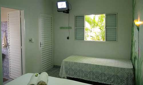 Todos os apartamentos possuem TV, ventilador de teto e banheiro privativo, disponibilizamos também apartamentos com ar-condicionado.
